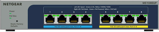 €614ΠερισσότεραNETGEAR 8-port Ultra60 PoE++ Multi-Gigabit (2.5G) Ethernet Plus Switch Managed L2/L3 2.5G Ethernet (100/1000/2500) Power over Ethernet (PoE) Grey