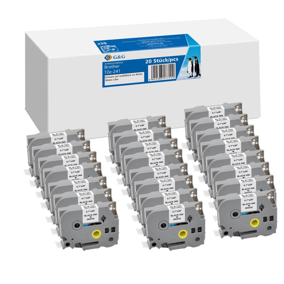 20x G&G Schriftband 18mm x 8m sw ws komp. m. Brother TZe-241