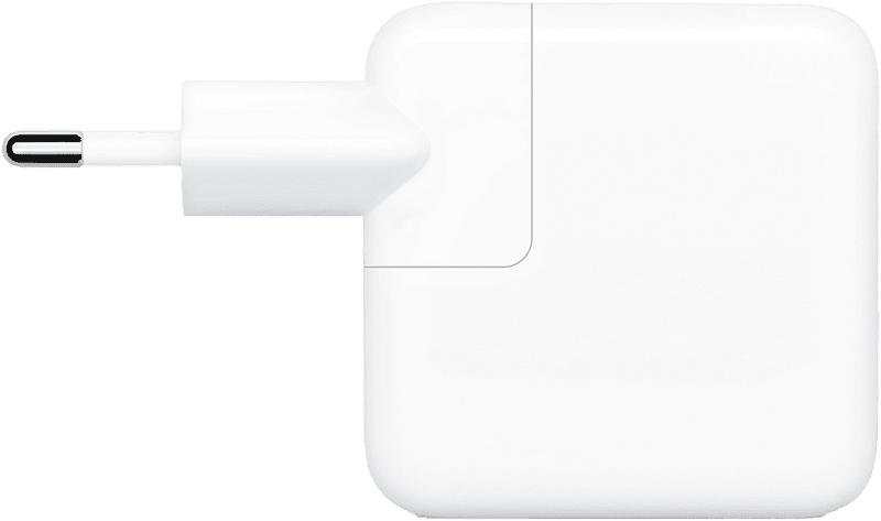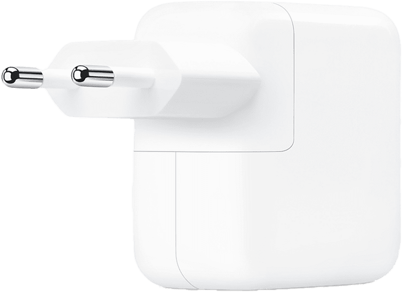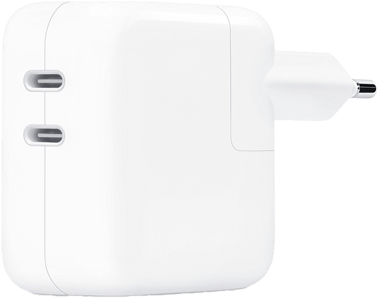 Description 35W Dual USB-C Power Adapter/Charger The 35W Dual USB-C Power Adapter lets you charge two devices at once. For home, office, and travel. Apple recommends using it with MacBook Air, but it also works with iPhone, iPad, Apple Watch, and AirPods. The 35W Dual USB-C Power Adapter lets you charge two devices at once. For home, office, and travel. Apple recommends using it with MacBook Air, but it also works with iPhone, iPad, Apple Watch, and AirPods. Pair this power adapter with the World Travel Adapter Kit to charge your device in other countries and regions. Charging cable sold separately.