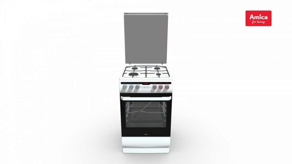 Description Cool Front (3 Glass Panels)Surely you or someone you love has burned themselves at least once by accidentally touching the hot oven glass. With an Amica cooker in your home, such situations will never happen again. The oven doors are equipped with three panes of glass the inner pane is reflective, reflecting heat, preventing the outer pane from overheating. Ensure the safety of everyone in your home in the kitchen.Preheat in 4 MinutesAre you constantly on the go and short on time? This function allows you to quickly preheat the oven to the selected temperature. It activates the convection heaters and the bottom element, or the reinforced grill and fan, utilizing the oven's full power to quickly heat the oven cavity. You can turn the oven on just before you start baking and be sure to finish everything on time!Stable Cast Iron RacksA pot of boiling water teetering on an unstable rack can be very dangerous. That's why Amica uses stable cast iron grates, which not only guarantee safety but also enhance the kitchen's aesthetics. They're designed so you can move hot pots and pans without the risk of dislodging the grate. Furthermore, they're dishwasher-safe, eliminating the need for tedious scrubbing. This is what convenience looks like from the kitchen.ConvectionThe convection function circulates hot air, creating an even temperature throughout the oven. This is achieved using bottom and top heating elements or a ring heating element. Every convection cooker is equipped with a fan that evenly distributes air throughout the oven cavity.Steam CleaningWith the steam cleaning function, cleaning your oven will no longer be as tedious. Steam softens stains, and cleaning is as simple as pouring 1 cup of water onto a baking sheet, setting the oven to 50°C (122°F), and leaving the appliance for 30 minutes. Dirt softened by steam can be easily removed from the entire oven using a sponge, water, and dishwashing liquid. Grease stains and other stains will disappear without the use of harmful chemicals.EasyClean EnamelScrubbing the oven is a chore you probably don't enjoy. To make cleaning easier, the interiors of Amica ovens are coated with a special EasyClean Enamel, free of pores and crevices that encourage dirt and grease to accumulate. From now on, cleaning your oven will be incredibly simple. Make your life easier! Don't waste too much time cleaning! Spend it with your loved ones or pursuing your hobbies.