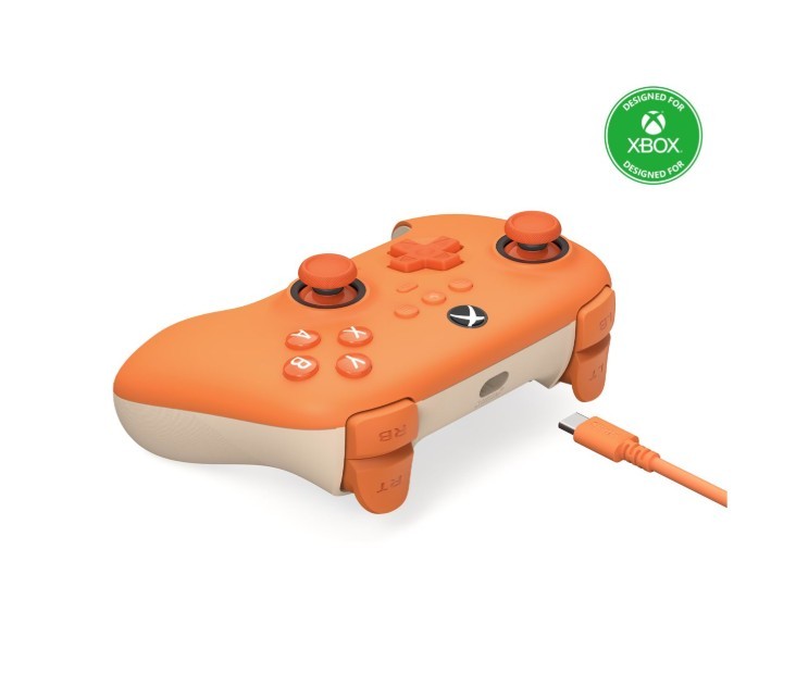 The orange colour and slim shape of the controller emphasise its modern look, while the contoured grips ensure stability and comfort even during long sessions.
