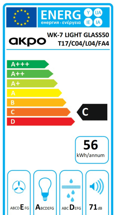 Akpo WK-7 Light Glass 50 Under-cabinet cooker hood Inox Black