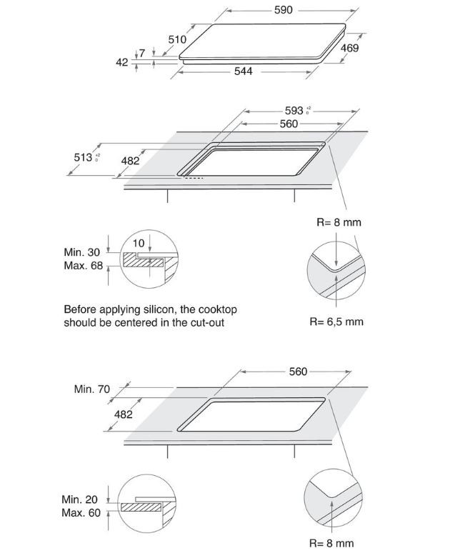 AKT625WH Gas on glass Hoob