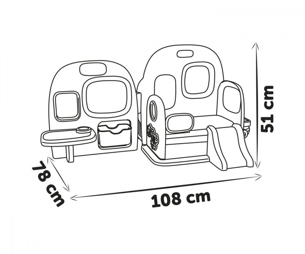 Thanks to the small bathroom with toilet, sink and toilet paper roll, kids can playfully learn about personal hygiene. There is a separate loft bed with a slide for the dolls' afternoon nap. Lunch is served in the combined dining and creative area, where kids can also get creative on the small whiteboard. Underneath is a toy box for storing accessories.