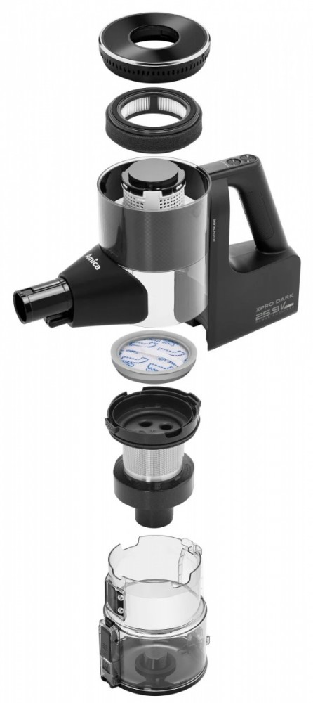 VMB XPro Dark Auto mode The Auto mode controls the suction power autonomously to match the dirt on the surface being cleaned, thanks to the special DustSensor in the main brush tool. When the tool moves from a hard floor to a carpet, the vacuum cleaner tells the difference and automatically adjusts the suction power. 2-in-1 vacuum cleaner Hand-held upright vacuum cleaner. For improved convenience. The vacuum cleaner easily gets into every nook and cranny. The long telescopic wand can be detached to vacuum the cabin of a car or the furniture in the living room. Colour LCD display The current work mode and battery charge of the vacuum cleaner are quick and convenient to check at any time. The icons on the state-of-the-art colour LCD display shows other messages to tell, for example, that the dust canister needs to be emptied or the filter must be cleaned, for non-stop, full control over how the appliance works. Power brush LED lamp The power brush with the LED lamp helps clean thoroughly in the darkest corners, like the floor under a sofa or a sideboard. No spot will be missed now. Ever. DustSensor Vacuum clean without missing a spot the dedicated DustSensor in the vacum inlet automatically detects the dust and dirt on the surface being cleaned. With Auto on, the vacuum cleaner increases the suction power in dirtier areas to provide the best cleaning results. Separate power brush tool supply A 10-Watt engine supply installed in the power brush tool boosts its speed. The boosted power brush tool helps tackle the vacuuming of long-pile carpets and rugs with ease. Cordless The Li-ion battery pack enables cordless operation, away from any power outlet. BLDC motor The brushless DC motor provides a longer operating life and better energy efficiency. No brushes in the motor reduce the operating noise. Operating modes Three preset operating modes, Min, Max, and Eco for easy suction power and operating time adjustment as needed. Electronic power control It is easy to select the right suction power for cleaning of drapes, sofas, carpets and parquet floors. Vacuum cleaner and tool dock Store it as needed – conveniently, safely, neatly, and without drilling any holes in the wall for mounting. Just wherever it fits. This is what the two-part folding dock is here for – to store the vacuum cleaner and its accessories. Book and slot tool A kit of accessories for better and more flexible vacuum cleaning. Extra motor upstream filter The filter protects the motor from dirt and extends its operating life. Battery overheat protection If the battery gets too hot, the vacuum cleaner will stop automatically. Once it cools down, it is ready to use again. Maximum operating time Up to 60 minute long battery time helps clean the whole house. Full power operating time The battery pack keeps the vacuum cleaner running for up to 8-17 minutes, depending on the model. Soft start When turned on, the vacuum cleaner starts running from the lowest power level and gradually increases it. Description VMB XPro Dark Auto modeThe Auto mode controls the suction power autonomously to match the dirt on the surface being cleaned, thanks to the special DustSensor in the main brush tool. When the tool moves from a hard floor to a carpet, the vacuum cleaner tells the difference and automatically adjusts the suction power. 2-in-1 vacuum cleanerHand-held upright vacuum cleaner. For improved convenience. The vacuum cleaner easily gets into every nook and cranny. The long telescopic wand can be detached to vacuum the cabin of a car or the furniture in the living room. Colour LCD displayThe current work mode and battery charge of the vacuum cleaner are quick and convenient to check at any time. The icons on the state-of-the-art colour LCD display shows other messages to tell, for example, that the dust canister needs to be emptied or the filter must be cleaned, for non-stop, full control over how the appliance works. Power brush LED lampThe power brush with the LED lamp helps clean thoroughly in the darkest corners, like the floor under a sofa or a sideboard. No spot will be missed now. Ever. DustSensorVacuum clean without missing a spot the dedicated DustSensor in the vacum inlet automatically detects the dust and dirt on the surface being cleaned. With Auto on, the vacuum cleaner increases the suction power in dirtier areas to provide the best cleaning results. Separate power brush tool supplyA 10-Watt engine supply installed in the power brush tool boosts its speed. The boosted power brush tool helps tackle the vacuuming of long-pile carpets and rugs with ease. CordlessThe Li-ion battery pack enables cordless operation, away from any power outlet. BLDC motorThe brushless DC motor provides a longer operating life and better energy efficiency. No brushes in the motor reduce the operating noise. Operating modesThree preset operating modes, Min, Max, and Eco for easy suction power and operating time adjustment as needed. Electronic power controlIt is easy to select the right suction power for cleaning of drapes, sofas, carpets and parquet floors. Vacuum cleaner and tool dockStore it as needed – conveniently, safely, neatly, and without drilling any holes in the wall for mounting. Just wherever it fits. This is what the two-part folding dock is here for – to store the vacuum cleaner and its accessories. Book and slot toolA kit of accessories for better and more flexible vacuum cleaning. Extra motor upstream filterThe filter protects the motor from dirt and extends its operating life. Battery overheat protectionIf the battery gets too hot, the vacuum cleaner will stop automatically. Once it cools down, it is ready to use again. Maximum operating timeUp to 60 minute long battery time helps clean the whole house. Full power operating timeThe battery pack keeps the vacuum cleaner running for up to 8-17 minutes, depending on the model. Soft startWhen turned on, the vacuum cleaner starts running from the lowest power level and gradually incre