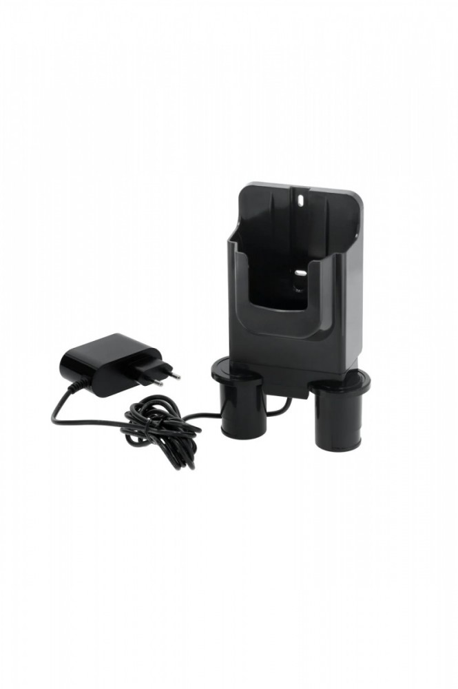 The dock can be installed on a wall or inside a closet for convenient storage of the vacuum cleaner and its accessories.