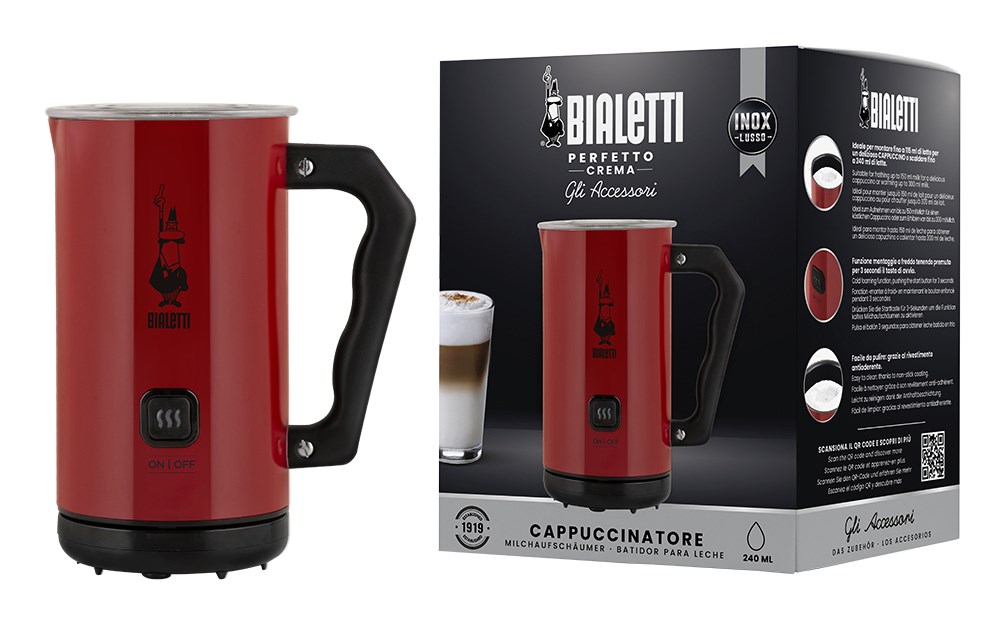 Με τον ηλεκτρικό αφρογαλιέρα της Bialetti σε μαύρο χρώμα, μπορείτε να ετοιμάσετε εύκολα και γρήγορα πλούσιο αφρόγαλα, ιδανικό για Cappuccino ή Latte Macchiato. Η συσκευή είναι κατασκευασμένη από αλουμίνιο και διαθέτει δύο διαφορετικά εξαρτήματα: ένα για αφρόγαλα και ένα για θέρμανση γάλακτος.