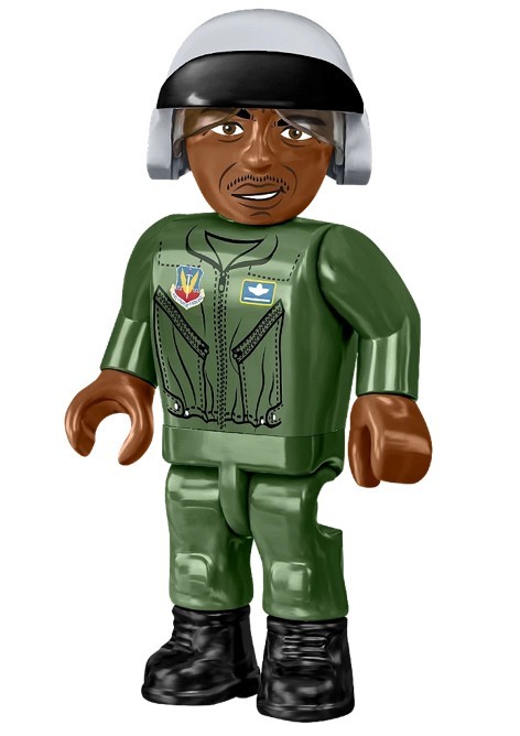 Two Figures The set includes pilot and weapon systems officer figures, dressed in flight suits with printed U.S. Air Force patches, equipped with helmets and oxygen masks with hoses.