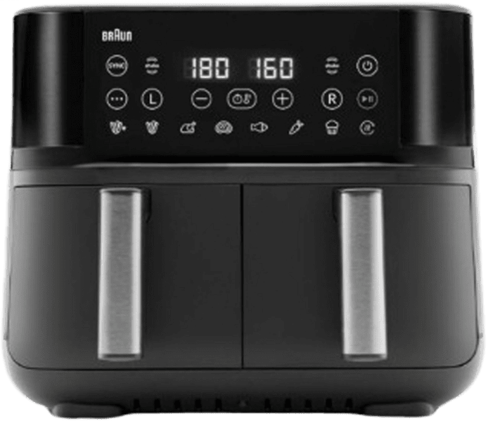 Home Appliances: Heißluftfritteuse Braun Braun TD 3030I BK TwinCook 3 Doppel-Heißluftfritteuse