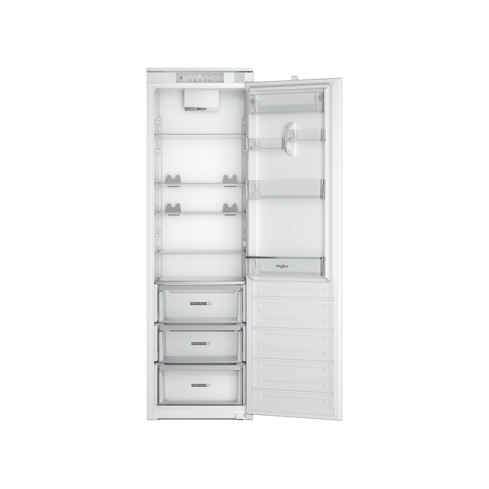 Description Built-in Refrigerator WHSD18A013C1 6th Sense Technology Save energy, keep freshness. The unique 6th Sense technology helps maintain the appealing look and taste of your food longer than standard refrigerators. Noise Level: 30 dB This refrigerator provides a very quiet and peaceful kitchen environment, with a noise level of just 30 dB. Auto Defrost Effortless defrosting. The Auto Defrost technology effectively removes ice buildup inside the refrigerator. Ventilation The Whirlpool fridge has a fan that evenly distributes air throughout the compartment for better ventilation. Holiday Mode Worry-free vacations. Holiday mode allows you to set the refrigerator to standby when you are away on holiday. Glass Shelves Beauty in every detail. The Whirlpool refrigerator features tempered glass shelves with rounded edges to prevent spills. Designed to combine aesthetics and functionality for the most convenient use. Electronic Control System Perfect operation. The refrigerators electronic control system maintains optimal settings, ensuring excellent performance and precise temperature control. LED Lighting Optimal illumination. Energy-efficient LED lights distribute light evenly throughout the refrigerator compartment, making it easier to find what you need.