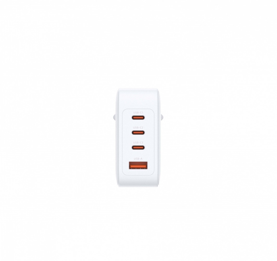 100W GaN Charger DCP-101 GaN technology ensures powerful, efficient, and safe charging with full overload protection. 100W fast charging allows for rapid charging of laptops, tablets, smartphones, and other devices (PD 3.0). Four USB-C/USB-A portsthree USB-C ports and one USB-A portallow you to charge up to 4 devices simultaneously. Full protection: automatic power cut-off in the event of overload, overvoltage, overheating, overcharging, or short circuit. Power: 1 Output voltage: 2 Output current (max): 5 Accessories included: 100W GaN Charger Quick Start Guide Warranty Card Dimensions: 67 x 63 x 31 mm   Weight: 2