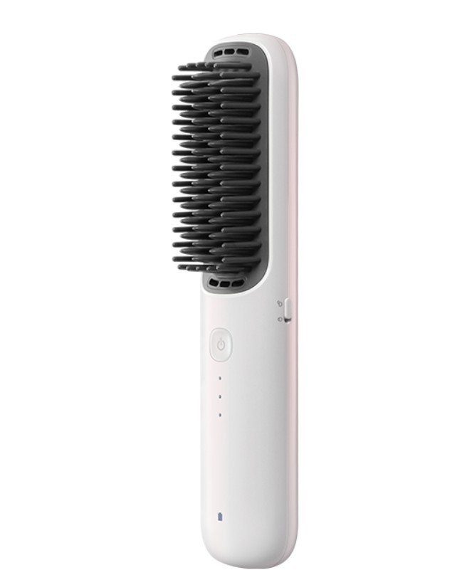 Abundant emission of negative ions Smooth out frizz The straightener brush has 6 negative ion emitters that continuously release high-concentration negative ions during use to smooth out frizzy hair strands. Wherever you are Straighten out messy hair Prepare for last-minute plans stress-free. With the cordless feature, one brush is all it takes to achieve sleek, shiny hair. Lightweight and portable with a one-touch lock Features a one-touch travel lock to prevent accidental activation, allowing worry-free storage in bags and suitcases. It's also lightweight and portable at only 269g. Ceramic coated Protect weak strands The comb teeth are coated with ceramic, reducing heat damage to your hair during styling while keeping it soft and shiny. Small yet powerful With two 3200mAh batteries at full charge, it can be used 34 times. Various temperature options Cater to different hair types With three temperature settings (160°C, 180°C and 200°C) it combs through soft and coarse hair types, leaving your hair with a smooth, healthy sheen. Two layers of protection on comb teeth For added burn safety Features outer comb teeth to prevent burns. The inner comb teeth are also covered with heat-resistant plastic for double protection to ensure safe usage. Maintains a stable temperature without unexpected fluctuations The heating element is crafted from MCH ceramic to deliver stable and constant heat that does not damage the hair while achieving excellent straightening results. Smart power-off for worry-free usage Features NTC overheat protection and automatic turn-off after 30 minutes. Type-C charging Convenient charging Achieve a full charge in just 3 hours with Type-C charging. Temperature (min): 1 Temperature (max): 2 Accessories included: Hair Straightener Brush Storage bag Type-C charging cable User manual Warranty notice Dimensions: 206,5 x 44 x 43,5 mm Weight: 2