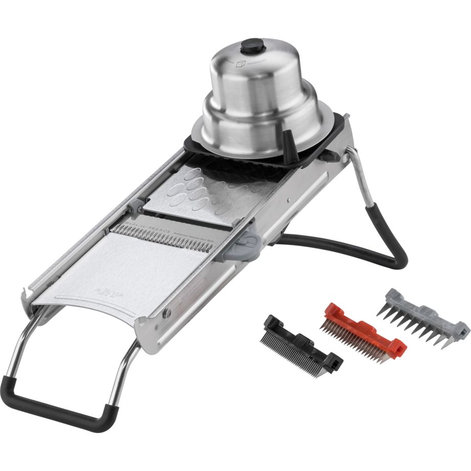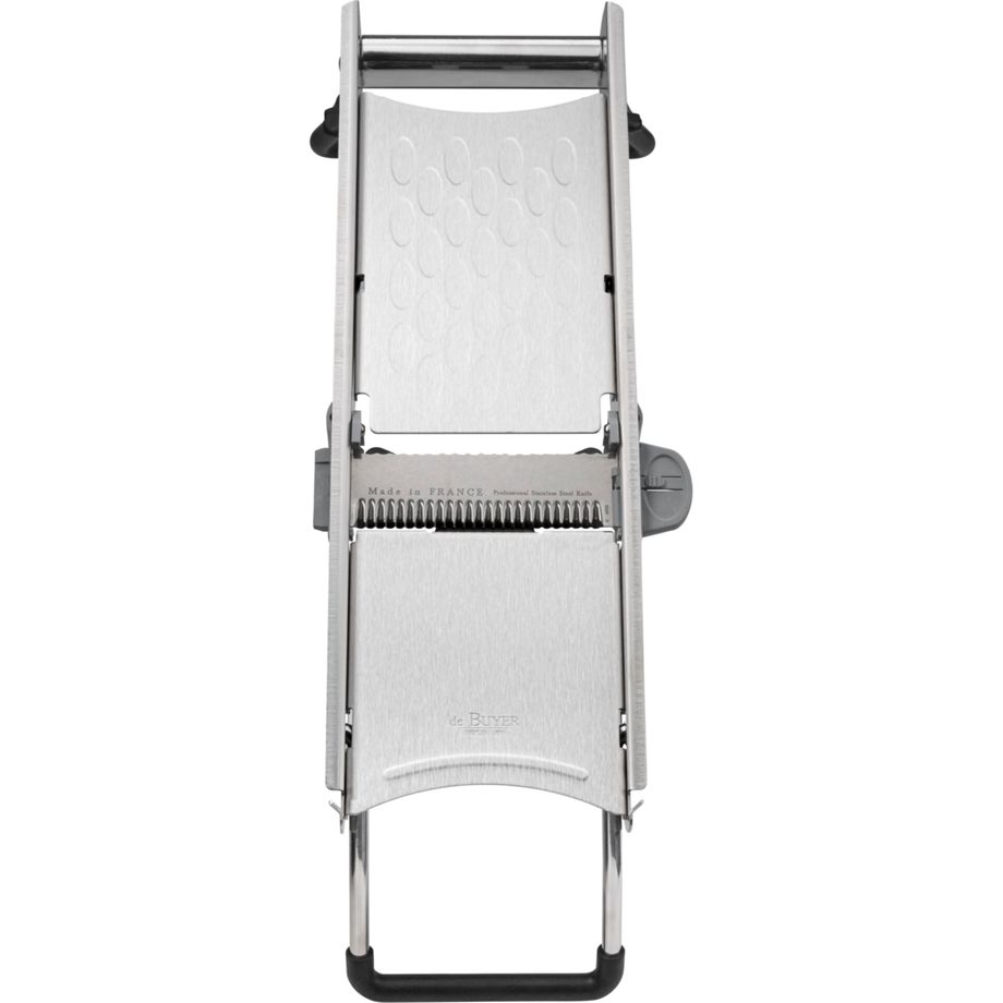 Το μαντολίνο από την De Buyer είναι ένα εργαλείο μαγειρικής που διευκολύνει την κοπή λαχανικών και φρούτων με ακρίβεια. Κατασκευασμένο από ανθεκτικό υλικό Inox, συνδυάζει αντοχή και λειτουργικότητα, καθιστώντας το ιδανικό για καθημερινή χρήση. Το ειδικό σχέδιο του μαντολίνου εξασφαλίζει ομοιόμορφες και λεπτές φέτες, ενώ η εργονομική του διάταξη προσφέρει άνεση κατά την κοπή.