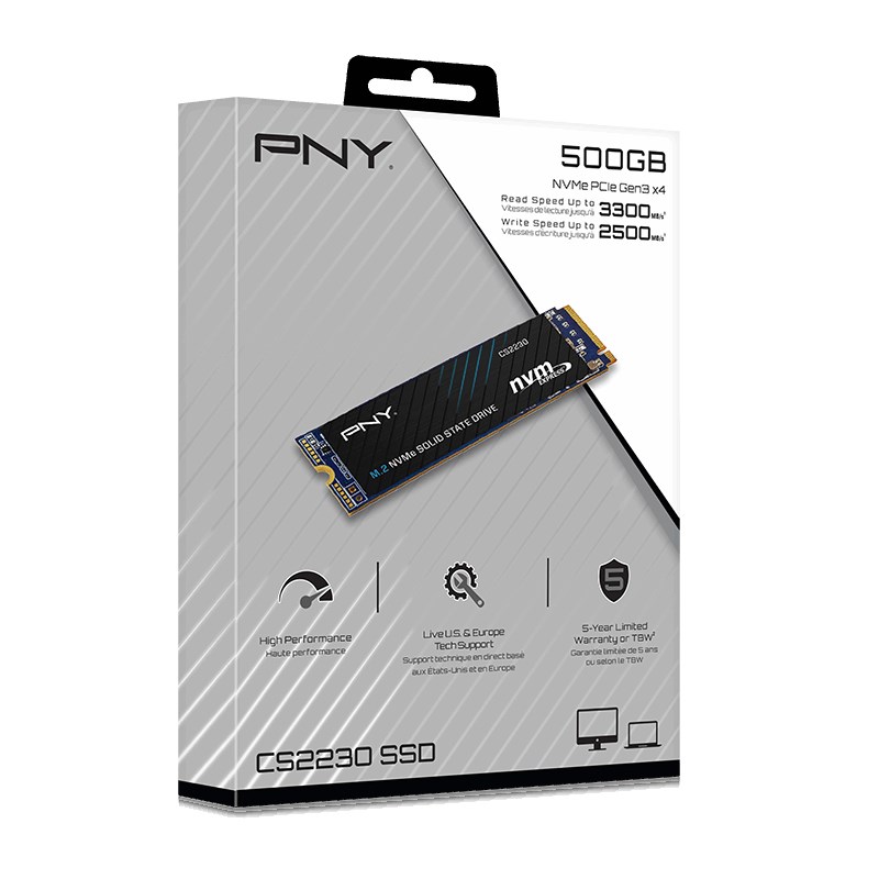 Description The PNY CS2230 M.2 NVMe SSD is an excellent choice for upgrading NVMe from a SATA-based solid-state drive (SSD) in an existing NVMe-enabled desktop or laptop computer. The CS2230 is designed as a SATA SSD replacement to help you achieve faster boot times, faster application launches, and better overall system performance. Do more in less time with NVMe; Startup, shutdown, and load applications up to 6x faster than SATA-based SSDs. With no moving parts, the PNY CS2230 M.2 NVMe SSD is highly durable and less prone to failure. Features and Benefits: