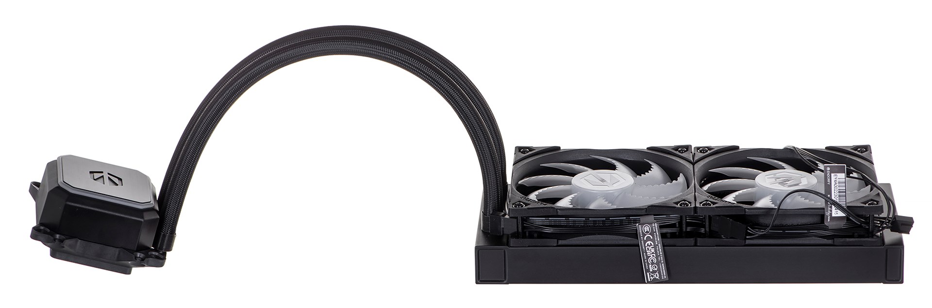 At its heart is a silent block-pump with ceramic bearing and PWM control. We have paired it with a 240 mm radiator with two Fluctus 120 PWM ARGB fans pre-installed. This compact kit is compatible with popular AMD and Intel sockets to fit into most standard cases, so you don't have to worry about your components being squeezed together like cosplayers queuing to enter a convention 😉