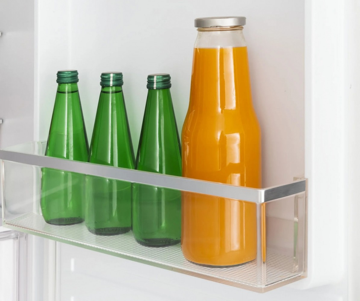 Ασφαλής αποθήκευση προϊόντων σε γυάλινα μπουκάλια. Το εφαρμοστό σχήμα του ραφιού θα κρατήσει τα μπουκάλια στη θέση τους και θα σας βοηθήσει να αξιοποιήσετε στο έπακρο τον χώρο στο ψυγείο.