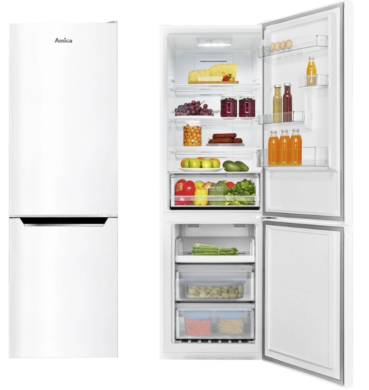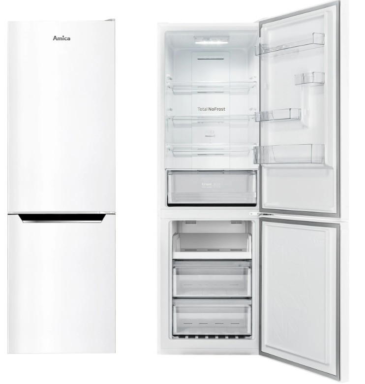 Description Fridge-freezer FK3506.2FW(E) Total NoFrost Do you enjoy defrosting your refrigerator? If not, youll never have to do it again! Total NoFrost technology provides constant humidity control in both the refrigerator and the freezer, which means no frost inside. And no frost means no need for defrosting! NoFrost also ensures better hygiene and longer freshness of your food, as a stable temperature throughout the refrigerator minimizes the risk of bacterial growth. You dont have to do anythingjust enjoy convenient savings! Simple InsideControl A perfectly designed kitchen combines ease of use with style. Thats why the control panel in refrigerators with electronic Simple InsideControl is located inside the refrigerator compartment. You can conveniently adjust the settings, while the elegant appearance is pleasing to the eye. No unnecessary elements on the front of the applianceergonomics paired with elegance! Energy efficiency class E Dont like high electricity bills? Choose your energy class wisely! Remember that a refrigerator operates all year round, 24 hours a dayand every second of its operation can mean savings for you. By reducing power consumption, you also help protect the environment. Super Cooling function A party? Expecting guests? When you need to cool a larger number of products at once, use the Super Cooling function! It allows you to chill a large quantity of food in a short time. Why is this important? The shorter the cooling process, the longer products retain their freshness and nutritional value. And thanks to optimal energy use, the costs are lower too. More convenient, healthier, and more economical! Fruit and vegetable drawer Do you store different items on the same shelf? Its no wonder fruits or vegetables may then smell different. Thats because odors from various foods mix inside the refrigerator. But if you use the dedicated fruit and vegetable drawer, they will always smell the way they should! Not only do you optimize space in your refrigeratoryou can now enjoy a delicious, fresh-smelling apple or peach whenever you like. Quiet operation The noise of a loud refrigerator can be irritating, especially in the evening or when the kitchen is connected to the living room. But thats no longer a problem! Amica refrigerators with the Quiet Operation function are designed to minimize noise generated by mechanical components as much as possible. This solution ensures everyday comfort for all household members. Fewer decibels, more family peace.