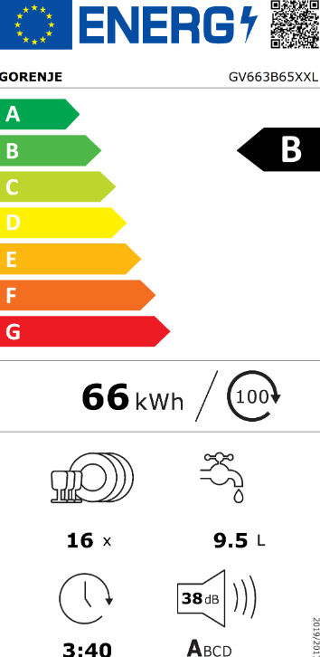 Gorenje GV663B65XXL dishwasher Undercounter 14 place settings D