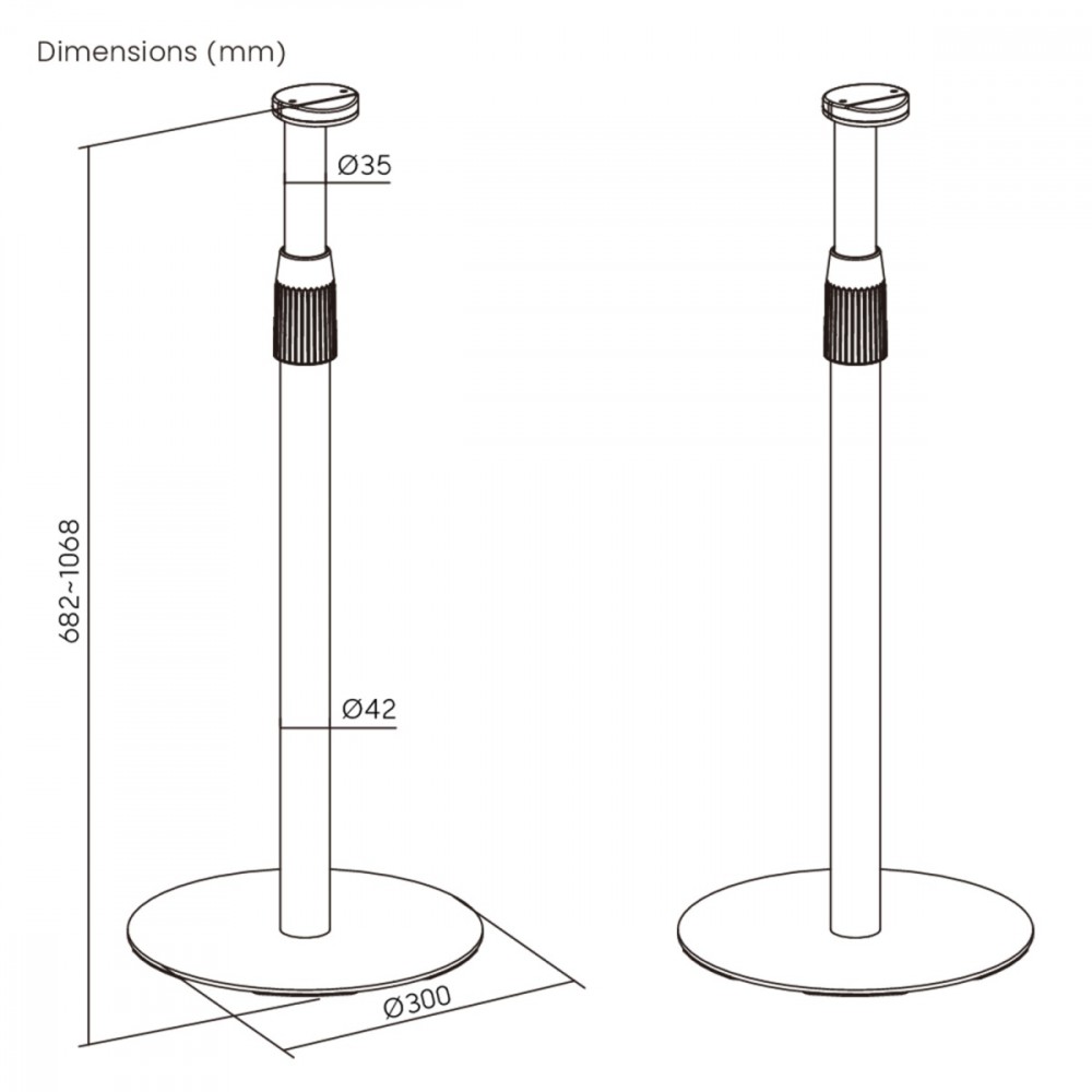 Dimensions: Height: 682~1068 mm (adjustable) Base diameter: 300 mm