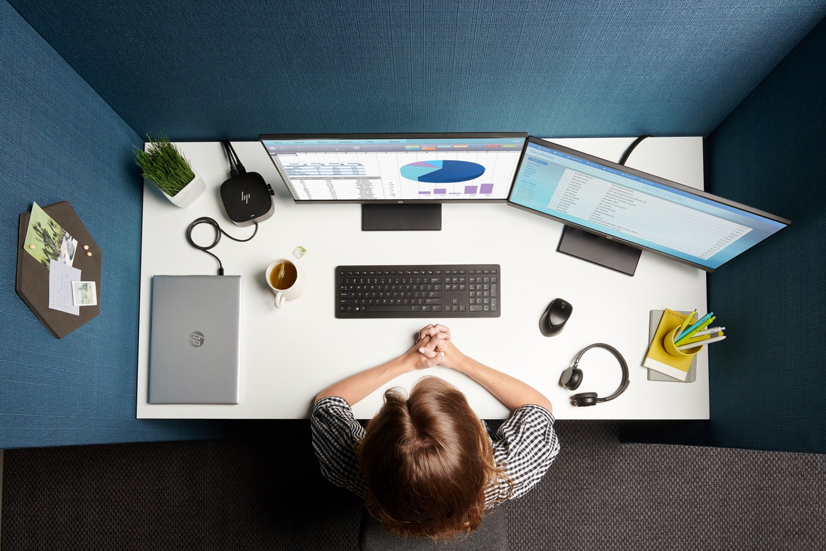 Συμβατότητα χωρίς περιορισμούς και απαλλαγή από την ακαταστασία με την κομψή HP USB-C® Dock G5 που εξοικονομεί χώρο.