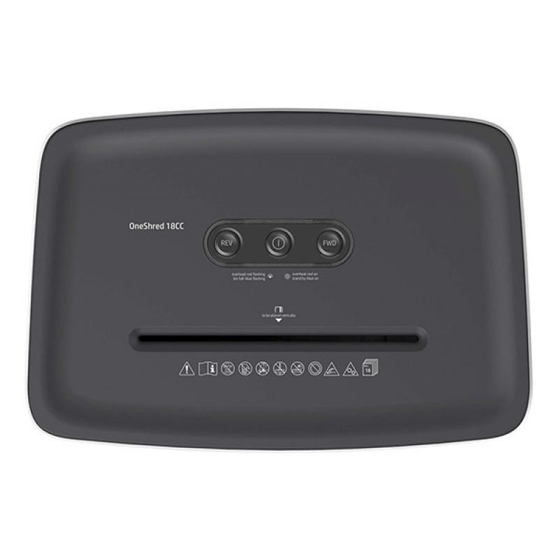Καταστροφέας εγγράφων HP OneShred 18CC – 2805 με ικανότητα καταστροφής συνδετήρων και καρτών. Διαθέτει κοπή τύπου Cross Cut P4 και μπορεί να καταστρέψει έως 18 φύλλα A4 ταυτόχρονα. Ο κάδος του έχει χωρητικότητα 25L.