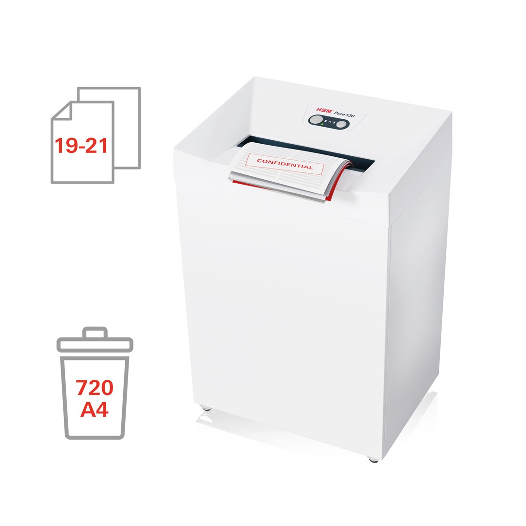 Ιδανικό για εργασία στο γραφείο. Οι απαιτητικοί χρήστες θα εκτιμήσουν την αθόρυβη λειτουργία του τεμαχιστή σε συνεχή λειτουργία, χάρη στη βέλτιστη ρύθμιση όλων των στοιχείων του μηχανισμού κοπής. Η συσκευή καταστρέφει έγγραφα έως και σε μορφή A3. Το κάλυμμα ασφαλείας με αισθητήρα αφής εξασφαλίζει υψηλό επίπεδο ασφάλειας. Εύκολη μετακίνηση χάρη στους τροχούς. Το άδειασμα του δοχείου είναι βολικό χάρη στις επαναχρησιμοποίησιμες πλαστικές σακούλες.