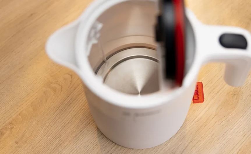Filling a kettle with water should be convenient. The lid of this kettle opens at the push of a button.