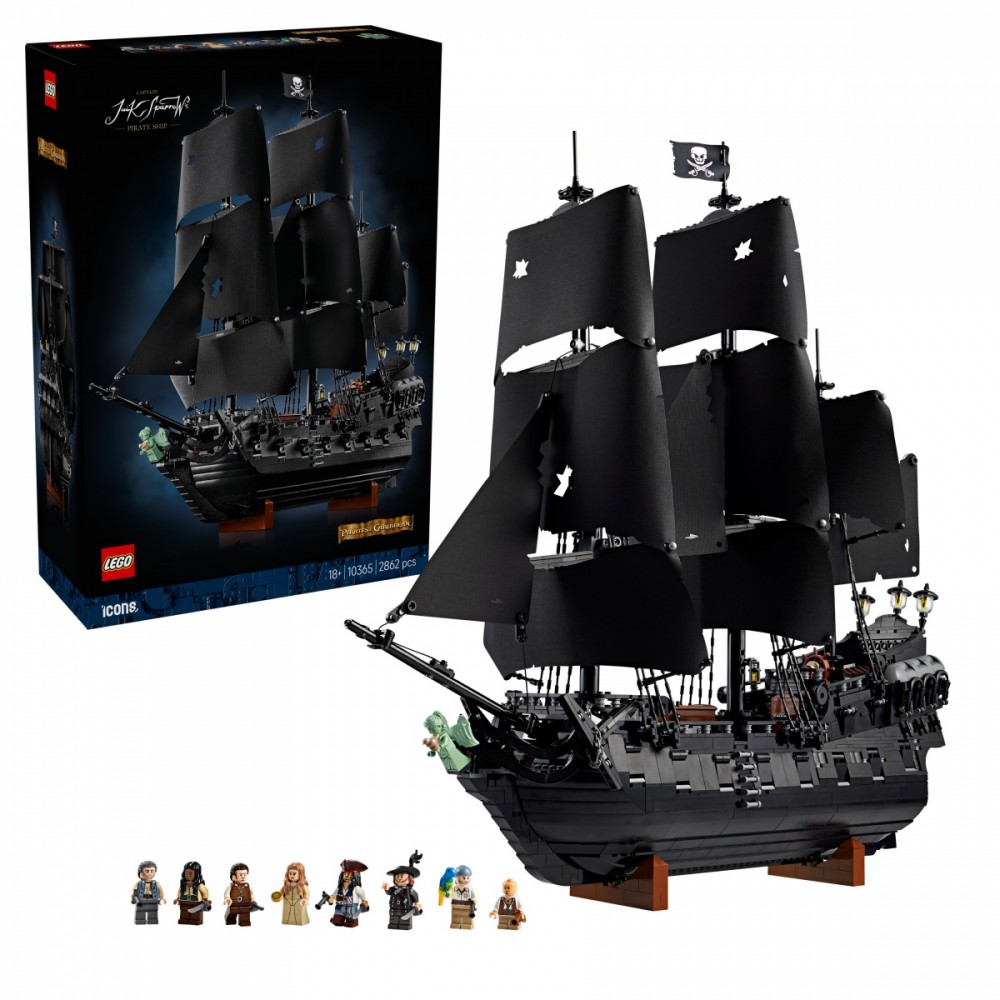 Embark on a creative voyage with the LEGO Icons Captain Jack Sparrows Pirate Ship (10365) model for adults. Craft a detailed LEGO interpretation of the legendary ghost galleon with soaring masts, torn black sails and a crew of 8 iconic film character minifigures, including Jack Sparrow, Will Turner, Gibbs, Cotton, Anamaria, Marty, Elizabeth Swann and Hector Barbossa.