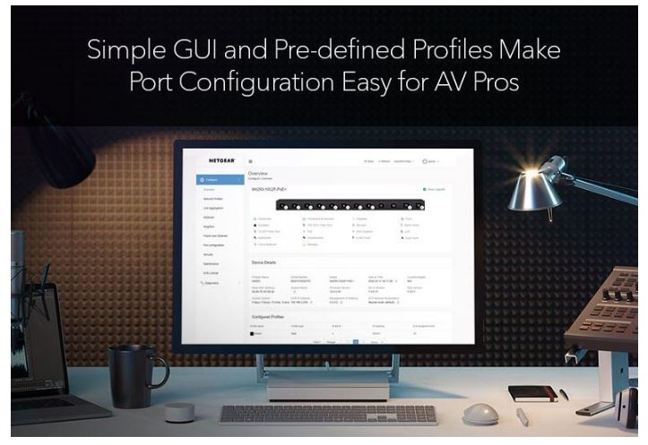 Description 40x1G PoE++ 2,880W and 8xSFP+ managed switch Switching designed for AV over IP 1 G technology with back-to-back ports for clean integration into AV racks. Pre-configured for operation out of the box! Ground-breaking graphical user interface Simplified user interface makes it easy to assign configuration profiles to each port. Instant group broadcasting The NETGEAR IGMP Plus feature enables group broadcasting immediately after unpacking for most AV over IP applications. Sleek, quiet design Lower fan noise and included mounting ears for under-table or wall installation. Auto-configuration Auto-trunk and auto-LAG function automatically connects to other M4250 (and M4300) switches. FAST, EASY CONFIGURATION FOR AUDIOVISUAL PROFESSIONALS A streamlined interface allows individual ports to be assigned AV factory defaults or user-specified AV profiles in just a few clicks. NO FAN NOISE Most models have a silent mode that significantly reduces fan noise, and some models are even fanless. RIGHT OUT OF THE BOX With NETGEAR IGMP Plus technology built-in, video configuration over an IP network is unnecessary. Enable multicasting right out of the box. Flexibility Clean lines and port activity status are shown on the front of the switch, and cabling is neat on the back. Universal mounting options allow mounting in a VESA rack or standard rack cabinets.