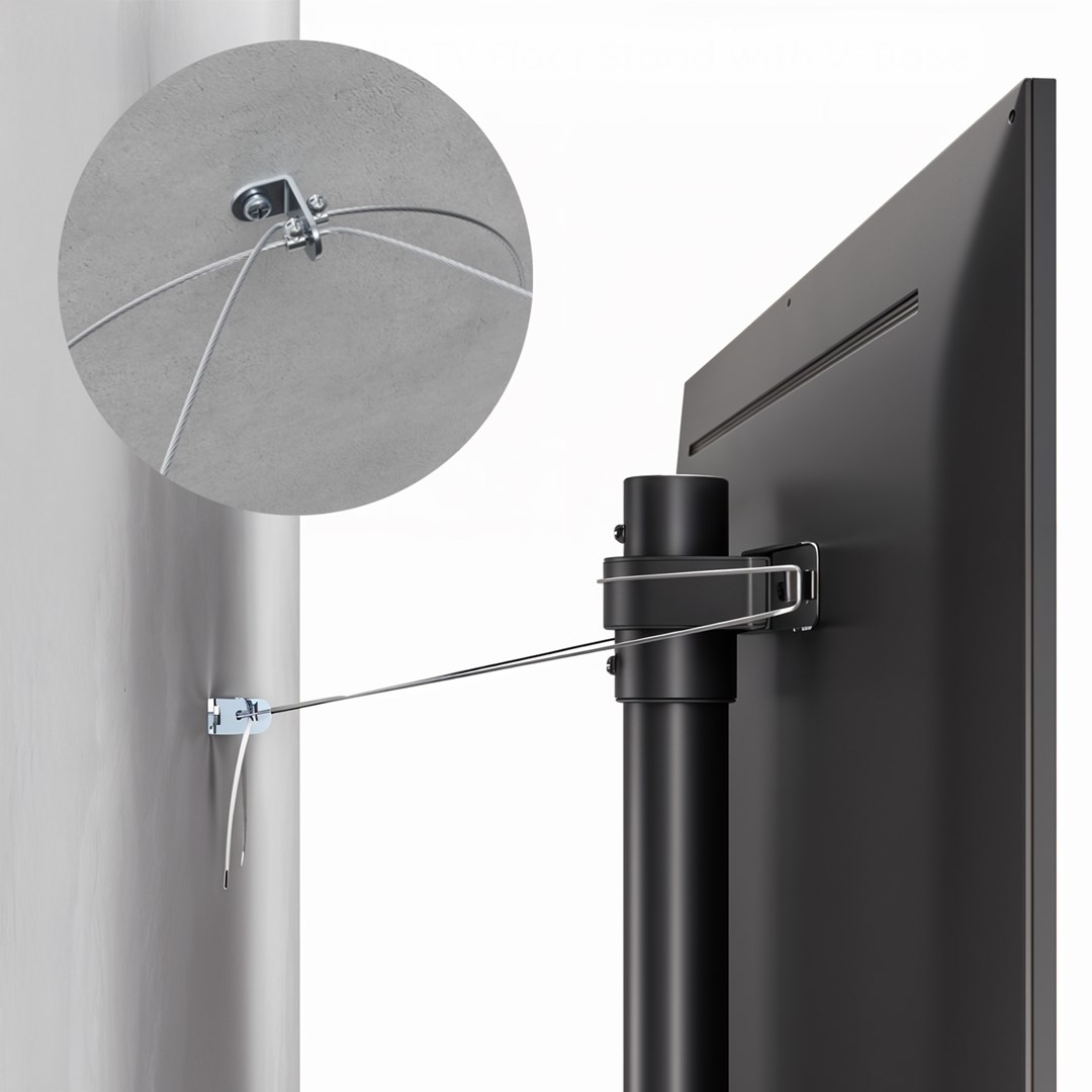 The sturdy base provides stability and safety, eliminating the risk of the screen tipping over. In addition, the ergonomic design of the stand allows it to easily fit into a variety of interior designs, and the 4-position height adjustment and swivel adjustment make it possible for users to adjust the position of the TV to suit their needs. The stand is equipped with a cable management system, which allows you to maintain order and aesthetics. Ideal for conference rooms, trade show exhibitions, airports, as well as for the home. The set comes with the screws necessary for proper installation and a pictorial installation guide.
