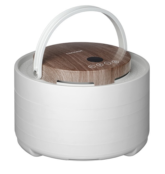 The Concept SO3020 food dehydrator impresses with its modern design, featuring a lid with an elegant wood finish and a practical handle for easy handling. It offers 7 drying trays and an intelligent design solution, with the motor located directly in the lid. This placement protects it from damage caused by dripping juice or food particles that may fall during drying. Its stylish appearance combined with practical details makes the dehydrator not only functional but also an aesthetically pleasing appliance in any kitchen.