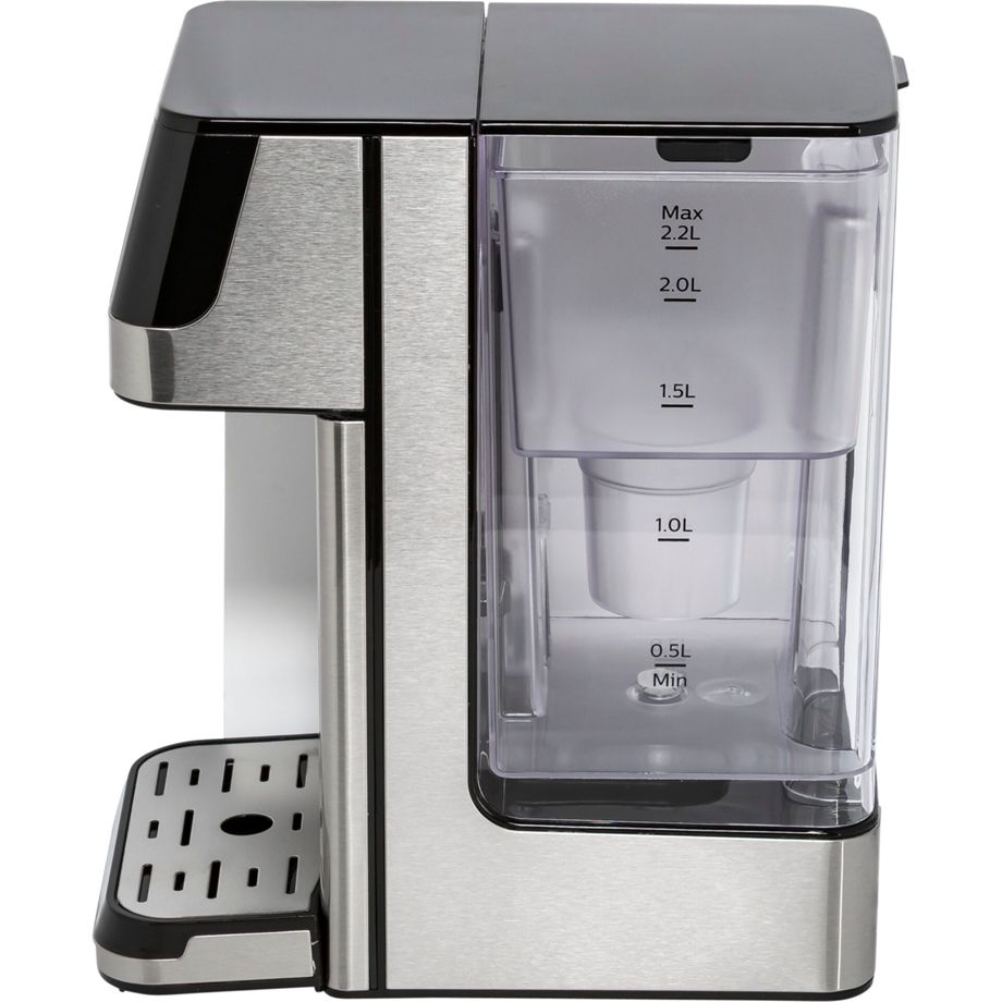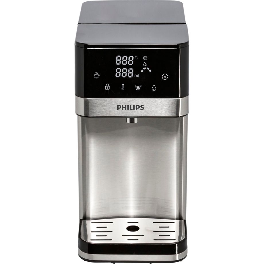 Description High performance and exceptional convenience. Now you can enjoy pure water, from one at room temperature to warming hot in seconds. Multiple volume settings at the touch of a button: 150 ml, 250 ml, 300 ml, 400 ml, 500 ml and more. Fresh hot water on demand in seconds Innovative instant heating technology allows you to deliver hot water in seconds, at the temperature you like, and bring out maximum flavour in your drinks. 6 temperature settings for different applications Providing pure water from one at room temperature to warming hot. Blanching, steaming, sterilising and boiling. Tea, coffee, spaghetti, baby bottle. The possibilities are endless. 5 capacity settings selected at the touch of a screen 150ml, 250ml, 300ml, 400ml, 500ml and continuous pour. You can always select the right amount of water to fill your favourite cups or even jugs and pots. Experience the true taste of water Enjoy delicious, clean water and great hot drinks. The Philips Micro X-Clean filter reduces chlorine, limescale, heavy metals and impurities such as microplastics and PFOA. Compact size, large 2.2 litre water tank Compact design fits anywhere in the home and office. Less need to refill and easy to stay hydrated with a large 2.2 litre water tank. Detachable water tank design for easy filling and cleaning. Plug and play; no installation required The dispenser will start working as soon as you plug in the power and switch it on. There is no need to connect it to the plumbing system. Filter life indicator reminds you when it is time to change the filter The filter life indicator reminds you to change the filter in time to ensure the best filtration performance. Saving more than 2,400 disposable plastic bottles per year Bottled water contributes to environmental pollution and is very expensive. Now you will never need bottles again. The water station is always on site and provides clean water on demand. No more reboiling and keeping warm, less energy consumption The right amount of water is heated at the right time. No more reboiling and keeping warm. You save 70% heating energy compared to an electric kettle.