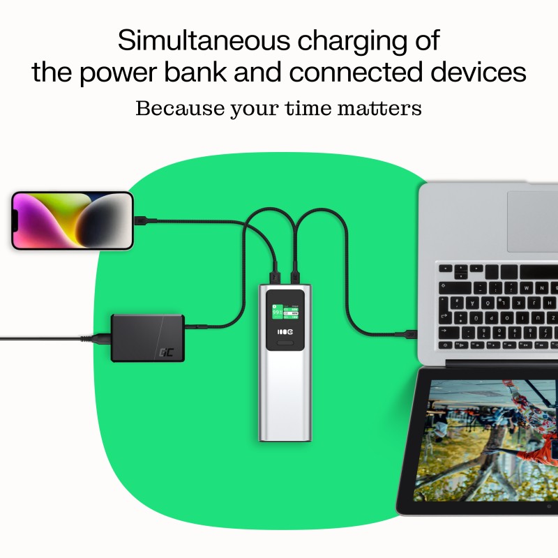 Greencell PowerPlay Ultra Powerbank 25200mAh 140W PD USB-C with Fast Charging for Laptop, MacBook, iPhone 16 15 14 Pro Max