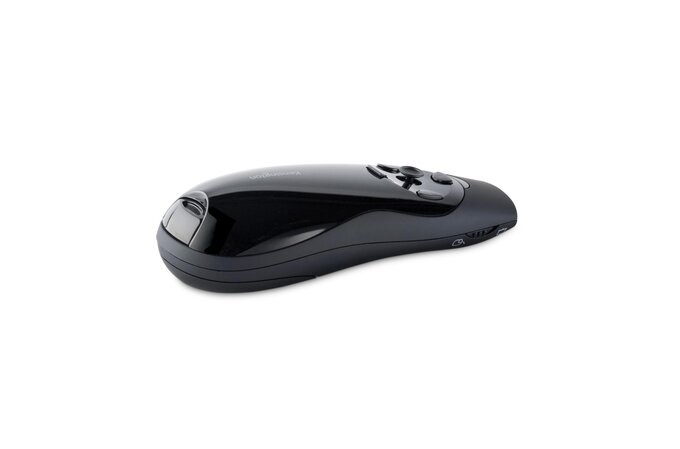 Provides full device control, so you can use the presenter like a mouse, just move the cursor up / down and left / right Pointer equipped with a red laser Indicate what is important at the touch of a button activate a bright red laser that will most effectively indicate the most important elements of the presentation. Intuitive, backlit control buttons Comfortable, backlit LED buttons allow you to smoothly switch PowerPoint or Keynote slides; the option to turn off the screen and the button to turn on the laser pointer is also available Range: 45 meters During the presentation, you can move around the room and you are sure that the presenter will work from anywhere, even if you go really far Receiver storage The USB wireless receiver can be stored inside the device, where it will be safe, because each receiver and presenter are uniquely paired to prevent interference 2.4 Ghz Plug & Play wireless connection Reliability and convenience thanks to the small USB receiver that provides freedom during presentations Comfortable handle The ergonomic shape makes it easier to hold the presenter, which sits perfectly in the hand Information about Kensington Joystick allows you to control the cursor in each direction just like a mouse. Pointer equipped with a red laser Illuminated buttons allow you to control slides, turn off the screen and use the green laser pointer Wireless range: over 45 meters The USB wireless receiver can be stored inside the device 2.4 GHz USB Plug & Play wireless connection Comfortable, ergonomic shape suited to the hand Compatibility with Windows 10, 8.1, 8, 7 and Mac OS X Keynote and PowerPoint control Color: Black