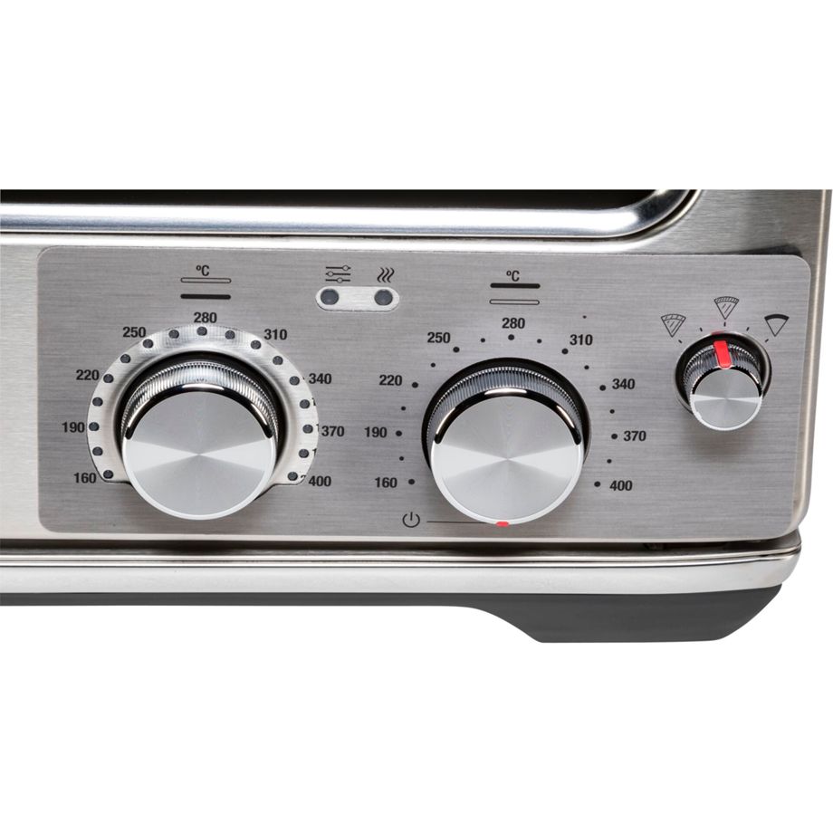 Η έντονη ακτινοβολούμενη θερμότητα ελέγχεται ομοιόμορφα από τα πατενταρισμένα θερμαντικά στοιχεία. Οι παραβολικοί ανακλαστήρες εντείνουν τη θερμότητα, μεγιστοποιώντας την απόδοση των κορυφαίων θερμαντικών στοιχείων. Η ενσωματωμένη βάση με την πόρτα διευκολύνει τη φόρτωση και εκφόρτωση της πίτσας.
