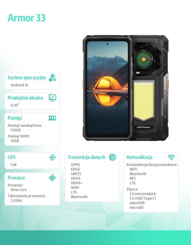 The heart of the Armor 33 is the high-performance MediaTek Helio G100 processor. Based on an energy-efficient 6nm architecture, the octa-core chip features Cortex-A76 cores clocked at up to 2.2 GHz. This delivers blazing-fast performance, smooth multitasking, and unparalleled responsiveness, crucial for professional applications and demanding entertainment.