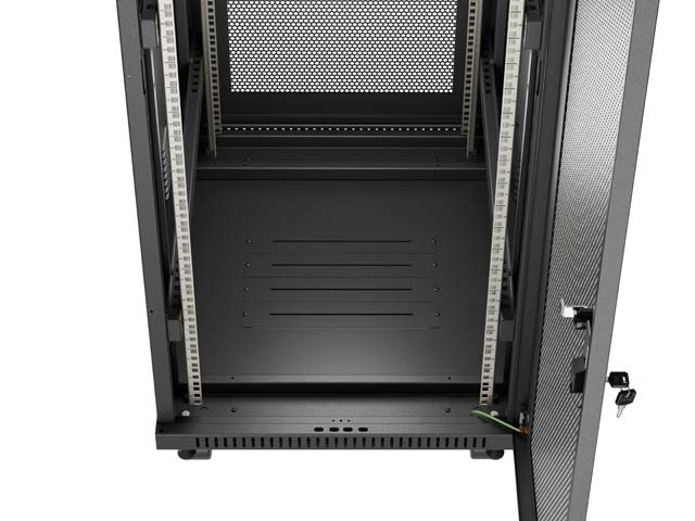 Thanks to the ventilation hole at the top of the design, each of our cabinets provides excellent airflow, which translates into effective cooling. This element, combined with built-in fans, guarantees temperature control inside the cabinet, which is key to maintaining optimal operating conditions for your equipment.