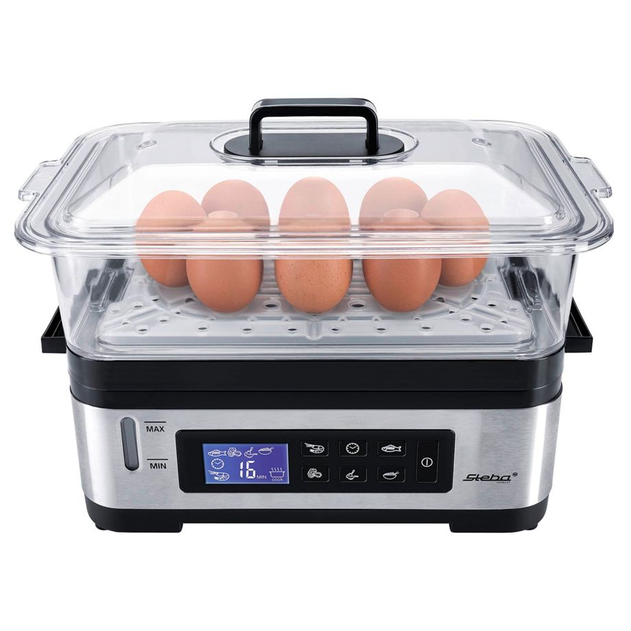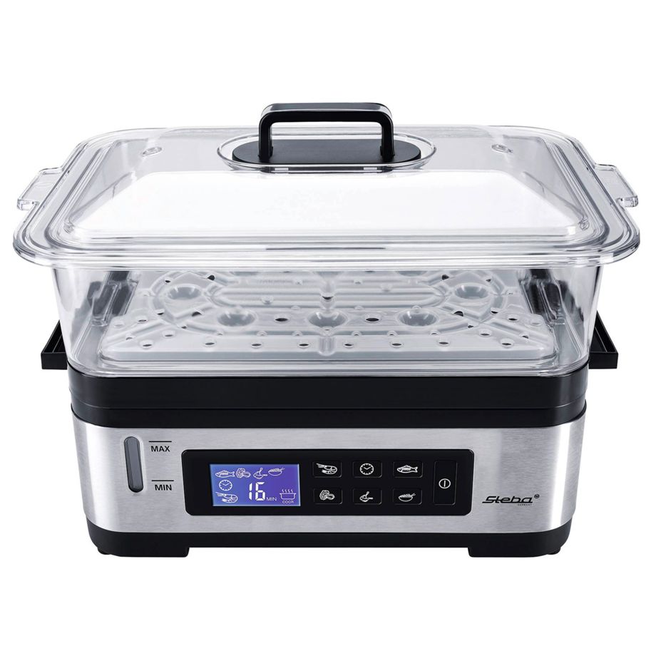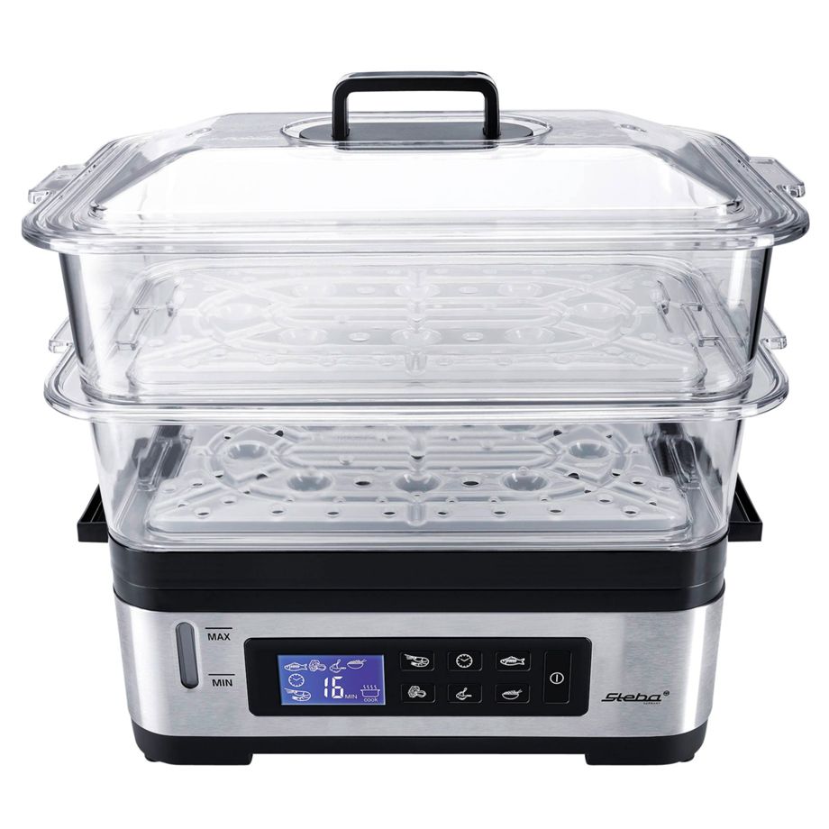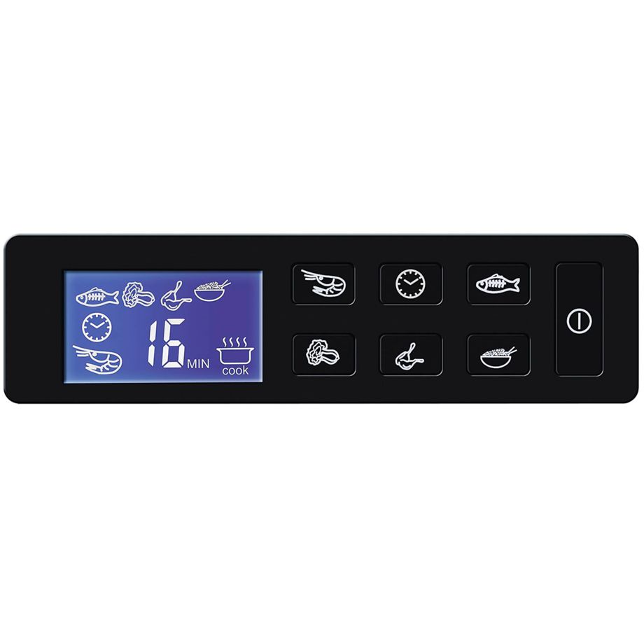 Αυτός ο ατμομάγειρας διαθέτει δύο δοχεία ατμού με συνολική χωρητικότητα 6 λίτρα, LCD οθόνη και χρονοδιακόπτη, προσφέροντας εύκολο και υγιεινό μαγείρεμα με διατήρηση θερμοκρασίας