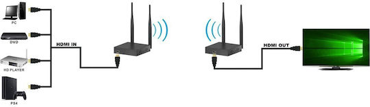 Η εγκατάσταση είναι απλή και απαιτεί μόνο τη σύνδεση της πηγής σήματος HDMI και του τροφοδοτικού στη μονάδα πομπού. Η ασύρματη σύνδεση μεταξύ πομπού και δέκτη δημιουργείται αυτόματα.