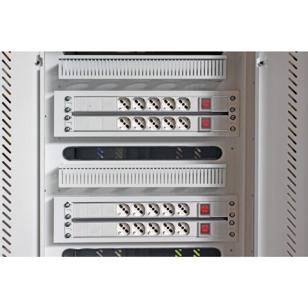 • Rear section fitted with six 5-socket Schuko standard power strips, totalling 30 AC outlets