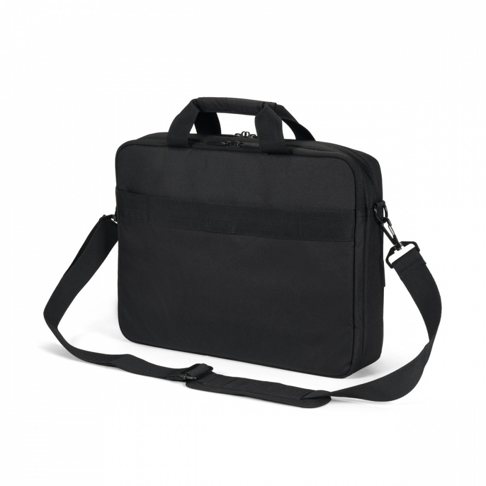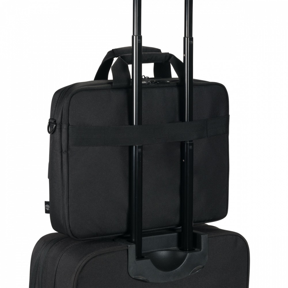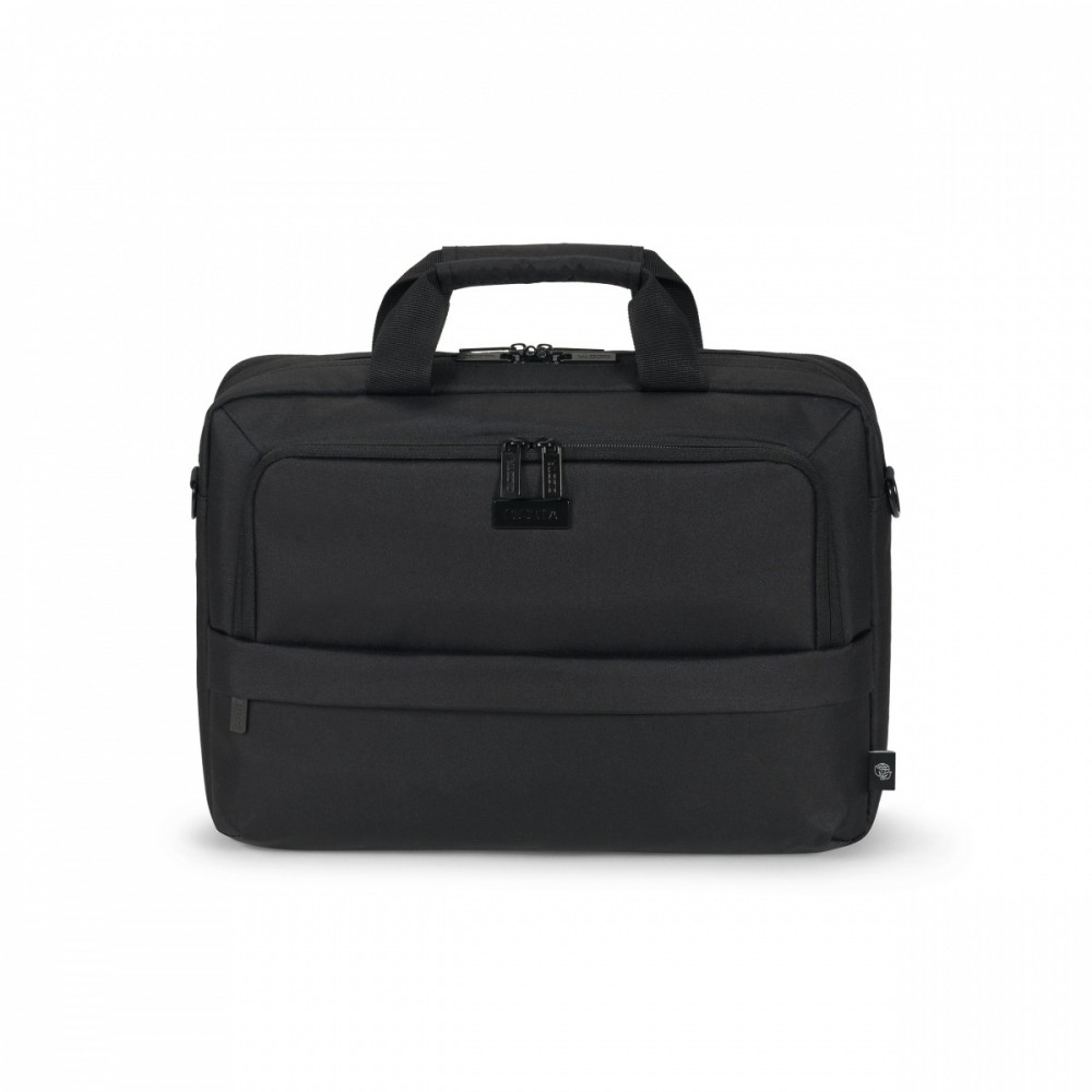 Eco Top Traveller CORE 15-17.3″ Laptop Bag A highly practical notebook bag with great features Today's actions shape tomorrow's world. That's why at DICOTA we are dedicated to developing environmentally friendly solutions and that's why we manufacture all products from our ECO collections from eco-friendly, recycled PET. We reuse up to 36 PET bottles, so you get an environmentally friendly product with a lifetime guarantee. Our PET products also have the quality, look and finish you know and love. The padded notebook compartment made of high-density foam (HDF) provides optimum protection for notebooks. The front pocket is specially designed for mobile accessories, while the zipped pocket offers space for the power supply and cable. The hidden compartment for a GPS tracker means you can always keep an eye on your bag, while the zipped pocket with RFID blocking protects personal data from unauthorized access. Important documents can be safely stored in the rear document pocket, while the padded shoulder strap ensures comfortable carrying. The bag is completed with a waterproof material that reliably protects the contents from the elements. Made from 8 recycled PET bottles Padded notebook compartment with high-density foam (HDF) Front compartment with pockets for mobile accessories Zippered pocket for power supply and cable Hidden compartment for GPS tracker Zippered pocket with RFID blocking Document pocket on the back Padded shoulder strap Water-resistant material Dimensions: 420 x 40 x 300 mm Weight: 7