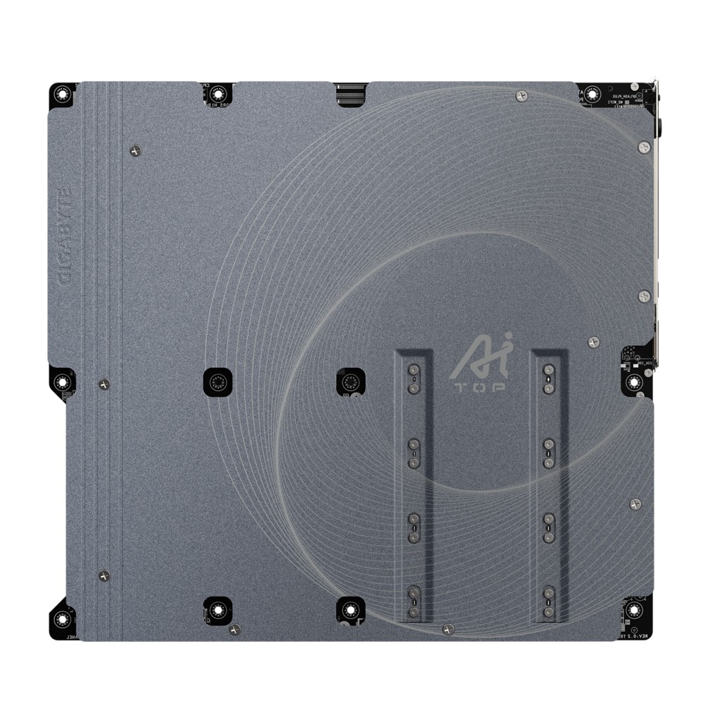 TRX50 AI Top Motherboard Train your own AI on your desktop sTR5 Socket: Supports AMD Ryzen Threadripper PRO 7000 series / Ryzen Threadripper 7000 series processors Breakthrough performance: 16+8+4-phase digital VRM solution 8-channel DDR5 memory: 8 SMD ECC R-DIMM modules with a maximum capacity of 2 TB Enhanced cooling: VRM Thermal Armor Advanced and M.2 Thermal Guard Maximum scalability: 4 PCIe 5.0 x16 slots for multiple GPUs and 4 PCIe 5.0 x4 M.2 slots Next-generation connectivity: Two USB4 Type-C ports Blazing-fast networking: Two 10 GbE LAN ports, Wi-Fi 7 with ultra-high-gain directional antenna, and WIFI EZ-Plug PCIe UD X slot: PCIe 5.0 x16 slot with 10× higher power for graphics cards EZ-Latch Click: Tool-free M.2 heatsink installation EZ-Latch Plus: M.2 slots with quick-release mechanism Hi-Fi audio with DTS:X Ultra: ALC4080 + ALC897 codec UC BIOS: Intuitive user interface with quick-access functions Description TRX50 AI Top Motherboard Train your own AI on your desktop sTR5 Socket: Supports AMD Ryzen Threadripper PRO 7000 series / Ryzen Threadripper 7000 series processors Breakthrough performance: 16+8+4-phase digital VRM solution 8-channel DDR5 memory: 8 SMD ECC R-DIMM modules with a maximum capacity of 2 TB Enhanced cooling: VRM Thermal Armor Advanced and M.2 Thermal Guard Maximum scalability: 4 PCIe 5.0 x16 slots for multiple GPUs and 4 PCIe 5.0 x4 M.2 slots Next-generation connectivity: Two USB4 Type-C ports Blazing-fast networking: Two 10 GbE LAN ports, Wi-Fi 7 with ultra-high-gain directional antenna, and WIFI EZ-Plug PCIe UD X slot: PCIe 5.0 x16 slot with 10× higher power for graphics cards EZ-Latch Click: Tool-free M.2 heatsink installation EZ-Latch Plus: M.2 slots with quick-release mechanism Hi-Fi audio with DTS:X Ultra: ALC4080 + ALC897 codec UC BIOS: Intuitive user interface with quick-access functions Model TRX50 AI Top 24366 16632 637 587 Chipset type AMD TRX50 4403 22021 Max memory size 2 26263 26713 Max. number of SATA devices 4 635 Detailed data on disk/drive interfaces 3 M.2 Slots (M2C_CPU / M2B_CPU / M2A_CPU) Integrated with the CPU Support SSD Socket 3, M key, 2280 form factor AMD Ryzen Threadripper PRO 9000-WX / PRO 7000-WX / 9000 series CPUs – PCIe 5.0 x4/x2 SSDs AMD Ryzen Threadripper 7000 series CPUs – PCIe 4.0 x4/x2 SSDs 1 M.2 Slot (M2D_CPU) Integrated with the CPU Supports SSD Socket 3, M key, 2280 form factor AMD Ryzen Threadripper PRO 9000-WX / PRO 7000-WX CPUs – PCIe 5.0 x4/x2 SSDs Sound card Realtek ALC4080 CODEC (rear panel audio) Support for DTS:X Ultra High Definition Audio 2-channel Realtek ALC897 CODEC (front panel audio) 24058 927 Network interface 2 x Marvell AQtion AQC113C 10GbE LAN chip (10 Gbps/5 Gbps/2.5 Gbps/ 1 Gbps/100 Mbps) USB ports at back panel 8 USB ports on motherboard 4 Number of USB 3.1/USB 3.1 gen 2/USB 3.2 gen 2 ports 6 646 389 391 5926 7840 24369 25735 5250 5254 5255 20026 25331 15634 7475 12168 7474 20067 7792 7481 7500 19614 7492 7487 7486 7828 7769 24780 23202 Special functions Support for GIGABYTE Control Center (GCC) Support for Q-Flash Support for Q-Flash Plus Support for Smart Backup BIOS 1 x 256 Mbit flash Use of licensed AMI UEFI BIOS PnP 1.0a, DMI 2.7, WfM 2.0, SM BIOS 2.7, ACPI 5.0 1660 Dimensions 30.5 x 33 cm 23653 22012 Software Norton Internet Security (OEM version) Software for managing LAN bandwidth 25607