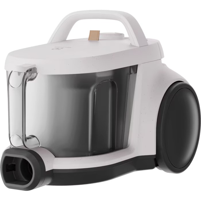 Description Bagless vacuum cleaner 500 Series EL51C2SW 78 dB This vacuum cleaner is designed with convenience in mind and features a 2 L dust container, a compact design for easy storage, and a cyclonic separator that helps prevent clogging. HEPA filtration and environmentally friendly recycled plastic make it both efficient and eco-conscious. Powerful suction for removing dust and dirt from all surfacesWith 100% dust pick-up from crevices, strong suction power, and the new AllFloor nozzle, you can effectively remove dust and dirt from hard floors and carpets. In addition, the brush mode can be switched using your foot. Cyclonic separator – clog-free vacuumingThe cyclonic separator reduces interruptions caused by clogging, while the easy-to-empty 2 L XXL dust container allows for longer use of the 500 Series Bagless Cleaner before it needs to be emptied. Easy, mess-free emptyingThe least hygienic part of vacuuming is now cleaner and easier. Simply empty the container with one hand; it is designed for hassle-free waste disposal and minimal contact with dust from start to finish. Ergonomic and compact designThis ergonomically designed vacuum cleaner ensures easier cleaning. Large wheels, a compact size, and a 9-meter operating radius provide smooth movement. The compact design also allows for convenient storage when the appliance is not in use. A more hygienically clean homeThe HEPA filtration system can filter up to 99.95% of particles as small as 0.3 microns, including fine dust and mites, delivering cleaner air.