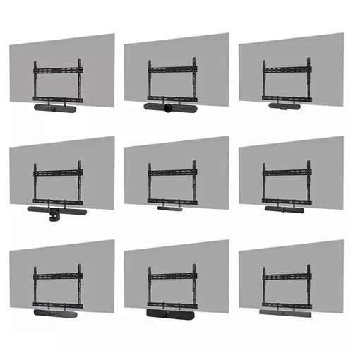 Compatible with most videobars, PTZ cameras, and soundbars, including Logitech Rally speakers, the AV30-500BL ensures broad applicability. The mounting holes allow width and height variation, while the VESA frame adjusts in both height and width (200/400/600/800). The kit can be used on wall, floor, desk, or ceiling mounts. Despite its versatility, installation is straightforward, aided by ruler-guided alignment for a seamless fit.