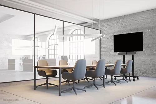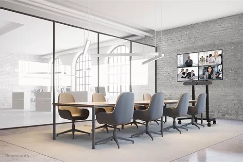 Description Videobar shelf AV30-500BL 43-110 inches 10KG The Neomounts AV30-500BL is a universal videobar kit designed for displays from 43″ and larger, with VESA hole patterns ranging from 200×200 up to 800×600 mm. Built for durability and versatility, the kit supports devices up to 10 kg and can be installed either above or below the screen. Both the videobar support and the backplate brackets are height-adjustable for maximum flexibility.Compatible with most videobars, PTZ cameras, and soundbars, including Logitech Rally speakers, the AV30-500BL ensures broad applicability. The mounting holes allow width and height variation, while the VESA frame adjusts in both height and width (200/400/600/800). The kit can be used on wall, floor, desk, or ceiling mounts. Despite its versatility, installation is straightforward, aided by ruler-guided alignment for a seamless fit.