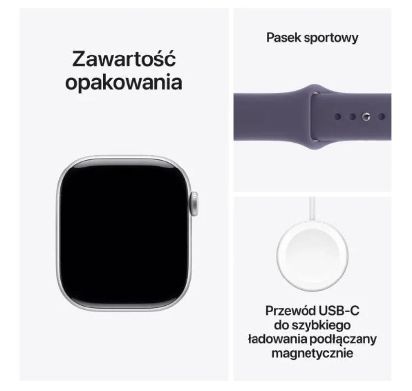 Get to know it from every angle Refined design. The Series 11 is the slimmest Apple Watch. You can comfortably wear it all day, even while sleeping, which makes monitoring vital signs easier. Greater battery performance. Tireless battery, sufficient for up to 24 hours of normal use on a full charge. And up to 8 hours with just 15 minutes of charging. Advanced sensors. When it comes to health, you can always keep your finger on the pulse. The Apple Watch Series 11 uses innovative sensors, including two that measure heart rate and wrist temperature. Durable IonX display. The Series 11 display is twice as scratch-resistant as the Series 10 display and ready for everything the day brings. Water and dust resistance. The Apple Watch Series 11 has a WR 50M water resistance rating, making it perfect for the pool or sea up to 6 meters deep. And the IP6X standard makes it completely dustproof. About your heart health The more you know about your health, the more effectively you can take care of it. With the Apple Watch Series 11, you get a fuller picture. With apps like ECG and Vital Signs, you can monitor your condition in real time. And the groundbreaking High Blood Pressure Notifications feature is invaluable for heart health prevention. High Blood Pressure Notifications High blood pressure affects over 1.3 billion people worldwide and is a leading cause of heart attack, stroke, or kidney disease. It shows no symptoms, so it often goes undiagnosed. It can even be missed during a doctors visit, because usually only one blood pressure measurement is taken. To receive high blood pressure notifications, you only need to wear the watch for a minimum of 30 days. The Series 11 will let you know if it detects symptoms of possible high blood pressure. How does it work? The optical sensor collects data, which is then analyzed by an algorithm for possible hypertension. To do this, it checks the response of blood vessels to heartbeats over a 30-day period. A completely new perspective. Solid scientific basis. High Blood Pressure Notifications is a groundbreaking feature created using advanced machine learning methods and a series of scientific studies. Over 100,000 people participated in these studies. The final step was testing the feature in clinical trials. Your blood pressure log. After receiving a high blood pressure notification, you can start keeping a log of measurements in the Health app on your iPhone. You will need a blood pressure monitor for this. Your log will make communication with your doctor easier. More health-supporting features Check your sleep quality first thing in the morning. Sleep quality is influenced by factors like duration, consistent bedtime, number of awakenings, and time spent in each sleep phase. The Sleep Score feature analyzes these factors every night and presents a summary in the morning in an easy-to-read report. This way, youll know exactly what affects your sleep quality and how to make it more restorative. Dont ignore sleep apnea. It involves repeated episodes of stopped breathing during sleep. Untreated sleep apnea can increase the risk of high blood pressure, type 2 diabetes, heart disease, and other health problems. The Series 11 monitors breathing disturbances during sleep and alerts you to possible sleep apnea. Vital Signs app. Get insight into your daily health at a glance. You can quickly check data recorded overnight, including heart rate, respiratory rate, wrist temperature, blood oxygen, and sleep duration. You will also receive a notification if values fall outside normal ranges. ECG app. Heart in the palm of your hand. The ECG app in Series 11 can detect signs of atrial fibrillation and irregular heart rhythms. Measurements are taken directly from the wrist in a similar way to a single-lead electrocardiogram. With the Heart Rate app, keep your finger on the pulse. You can check it anytime. Youll also receive notifications if your heart rate is too high or too low, or if arrhythmia occurs. Cycle Tracking keeps you up to date. Every menstrual cycle is different. By observing yours, youll better understand its rhythm. The Cycle Tracking feature lets you record your period and accompanying symptoms. Youll receive a predicted date for your next period and fertile days. The feature will also notify you of unusual cycle patterns. Estimated ovulation time based on previous data. The Series 11 has an advanced sensor that monitors your temperature while you sleep. The Cycle Tracking app uses this data to determine the probable ovulation time. This information is extremely helpful for family planning. Blood oxygen measurement. A breathtaking innovation. The Apple Watch Series 11 is equipped with a sensor and app that measure blood oxygen both when you want to check and in the background, day and night. Who knows the results, gets results Whether you want to improve your treadmill or swimming performance, the Apple Watch Series 11 will help you train in countless ways. The device tracks every movement, analyzing many useful parameters. Because the more you know, the more you achieve. Sounds clever? Lets get started! Begin your workout with one click. Refreshed Workout app. Surprising in form. Its improved interface includes four new corner buttons, providing faster access to features like Base Pace, Route Race, and Custom Workout. Complete another lap of your Activity Rings. Move, Exercise, Stand. In the Activity app, the ring-closing animation reflects your movement. You can also pause rings and adjust your goals for each day of the week. Supports runners at every level No matter your running goals, the Apple Watch helps you achieve them easily. Durable battery, precise GPS, and motivating features that allow real-time tracking give you the perfect start. Time for your new personal record. Training load at a glance. With helpful analyses, youll better understand how workout intensity affects your body. Youll know when to push harder and when to rest. Create your o