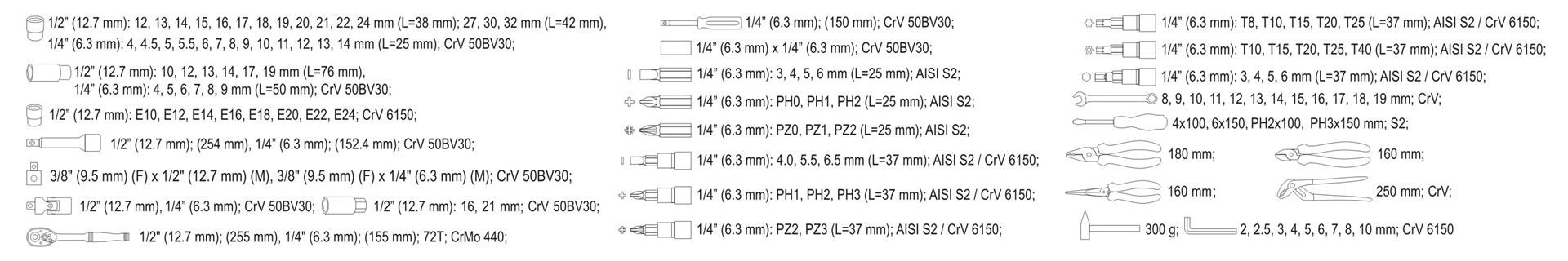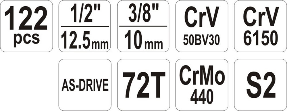 Βασικά χαρακτηριστικά : 2 Καστάνιες (1/2″ & 1/4″) Ποσότητα ανά συσκευασία: 122 τμχ Κατασκευή από ατσάλι